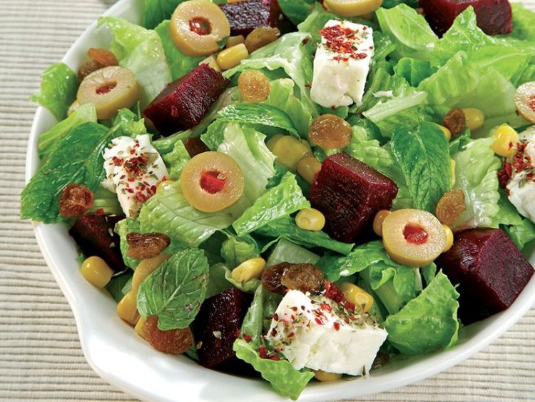 - Pancar turşusu, mısır, ince doğranmış turp, dilimlenmiş zeytinler ve nane yapraklarını ilave edin..