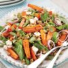 11. İnce jülyen doğradığınız salatalık, havuç ve kırmızı biberi ilave edip harmanlayın..