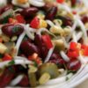- Üzerine dilimlediğiniz yeşil zeytinleri, ikiye böldüğünüz domatesleri, piyazlık doğradığınız soğanı, jülyen doğradığınız kırmızıbiberi ve yeşil biberi ekleyip harmanlayın..