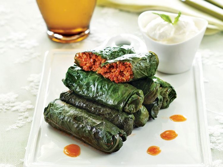 - Yaprakların üzerine birer yemek kaşığı iç harçtan paylaştırıp iç harç dökülmeyecek şekilde sarın..