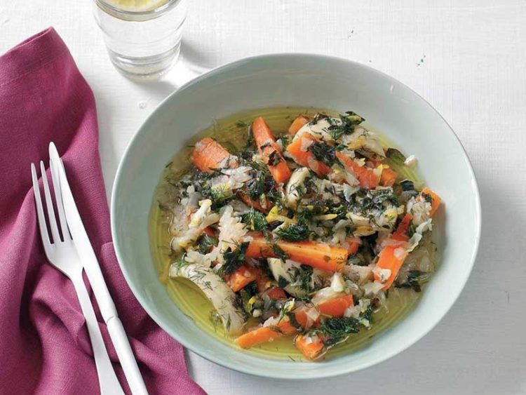 - Ocaktan alıp, üzerine kalan zeytinyağını, rendelenmiş limon kabuğunu, nane ve dereotunu serpin..