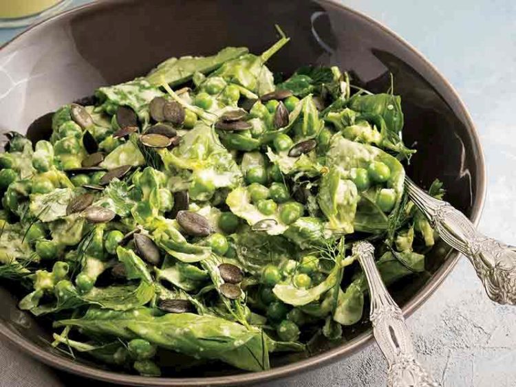 - Sosu için gerekli olan tüm malzemeyi pürüzsüz bir kıvam elde edinceye kadar mutfak robotundan geçirip salatanın üzerine gezdirin..