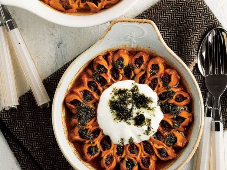 - Mantıları fırından alıp süzme yoğurt ve naneli tereyağı gezdirerek sıcak servis yapın..