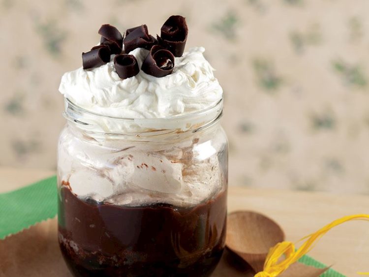 - Çikolatayı ekleyerek karıştırın ve pudingin üzerine ekleyin..