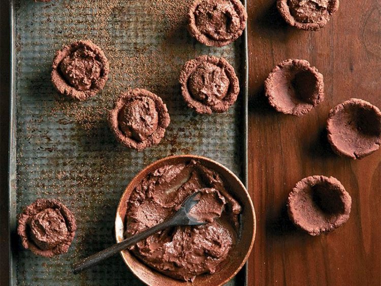7. Her bir yuvarlağı küçük tart kalıplarınızın tabanlarına elinizle bastırarak yayın..