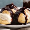 - Soğuduktan sonra üzerine eritilmiş çikolata ile kremayı karıştırıp döküp servis yapın..
