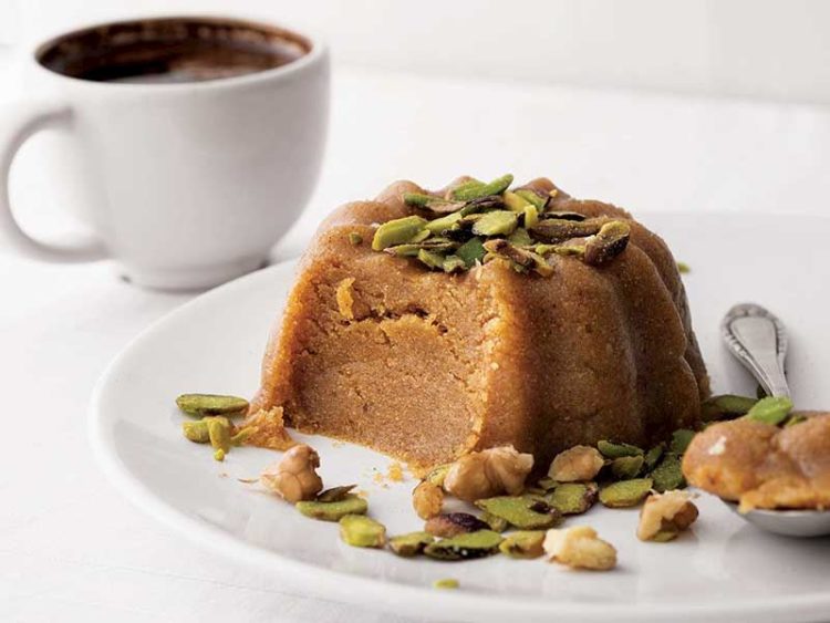 - Üzerini file fıstık ve iri kırılmış cevizle süsleyerek sıcak servis yapın..