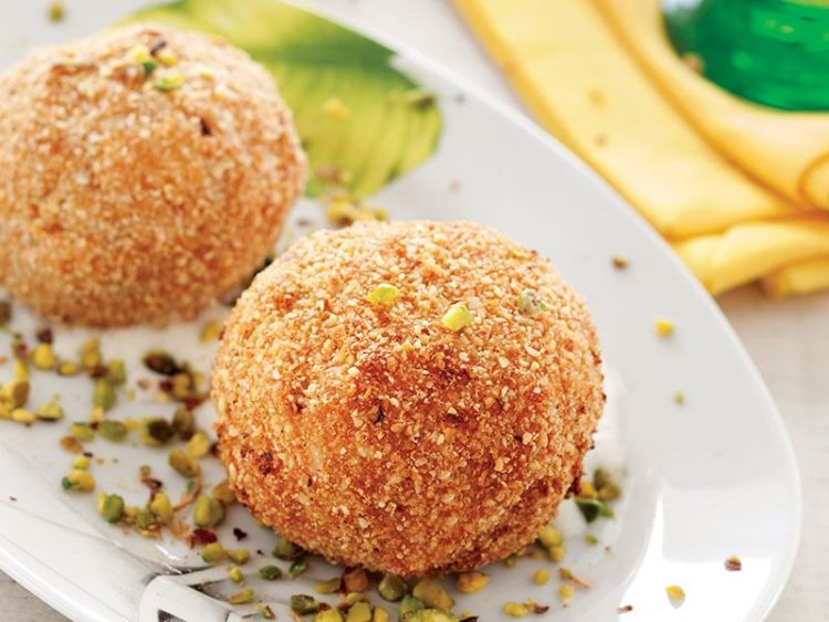 - Dondurma toplarını önce çırpılmış yumurtaya ardından mısır gevrekli karışıma bulayın..