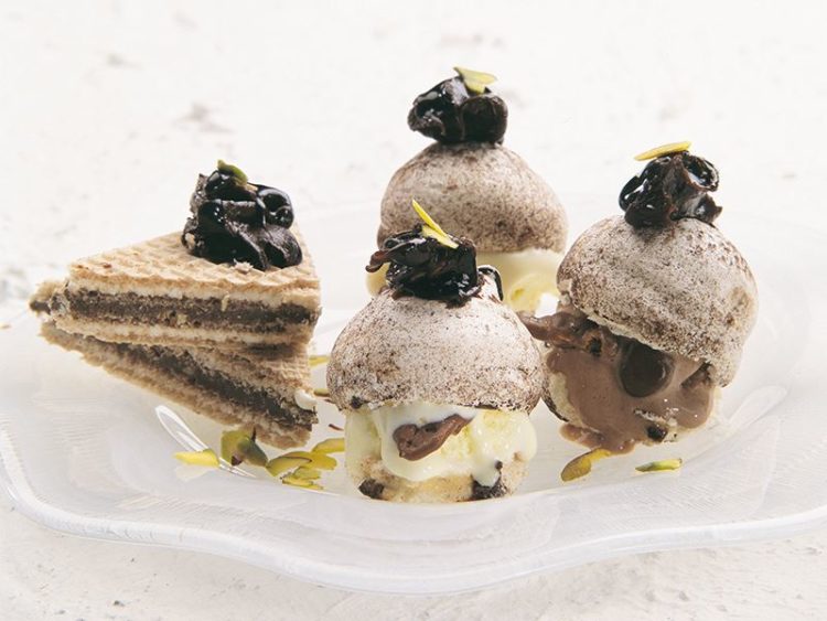 - Karışımı alt merenglerin üzerine paylaştırıp dondurma toplarını ilave edin..