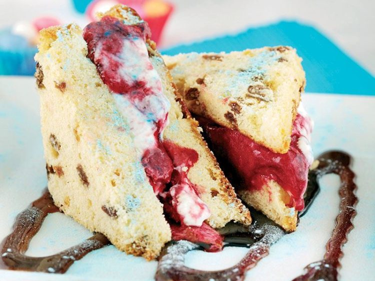 - Dondurmayı iki kek diliminin arasına doldurun..
