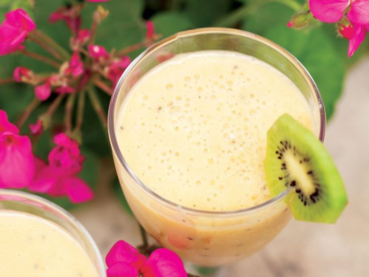 - Blender kabına dilimlere ayırdığınız meyveleri, kayısı suyunu, buz küplerini ve dondurmayı alıp blenderden geçirin..