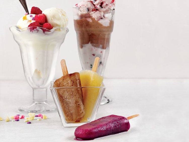 3. Dondurma kalıplarına paylaştırıp ortalarına tahta çubukları batırın..