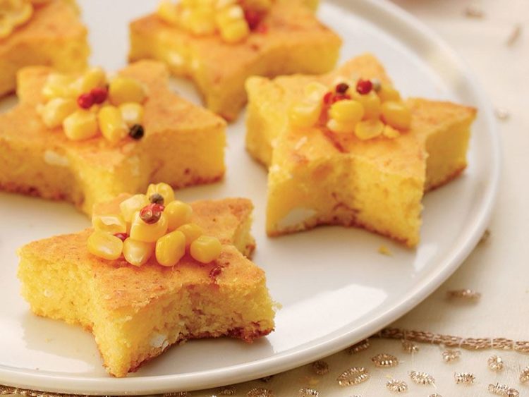 - Yıldız şeklindeki kalıplarla kesip mısır taneleri ve tane kırmızı biberlerle süsleyin..