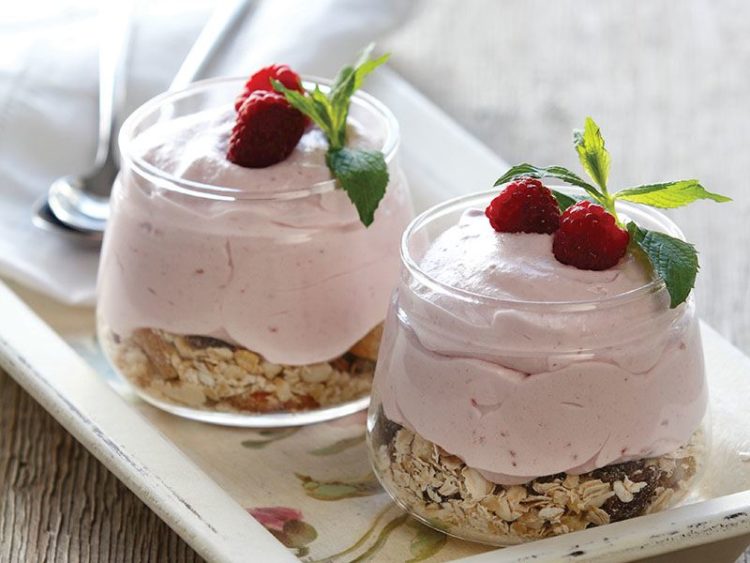 - Üzerini ahududu ve nane yapraklarıyla süsleyip servis yapın..