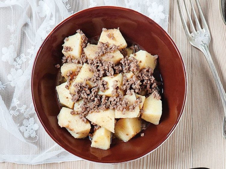 - Ayva dilimlerini yağıyla birlikte ete ilave edin..