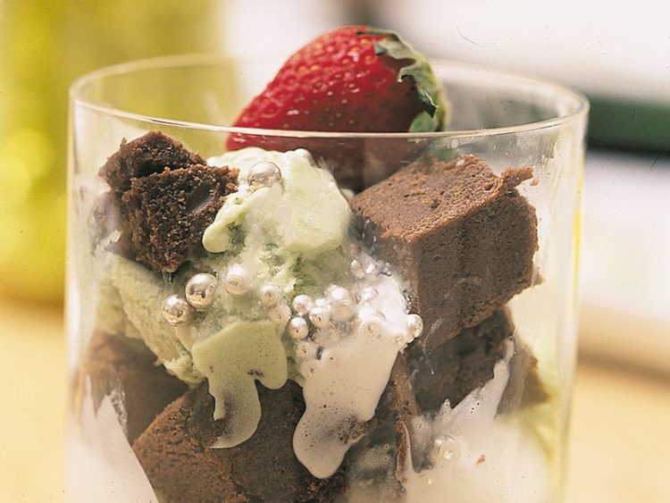 - 4 parça hazır brownie4 top fıstıklı dondurma4 top vanilyalı dondurmaSüsleme için:Lame top şekerlemeler4