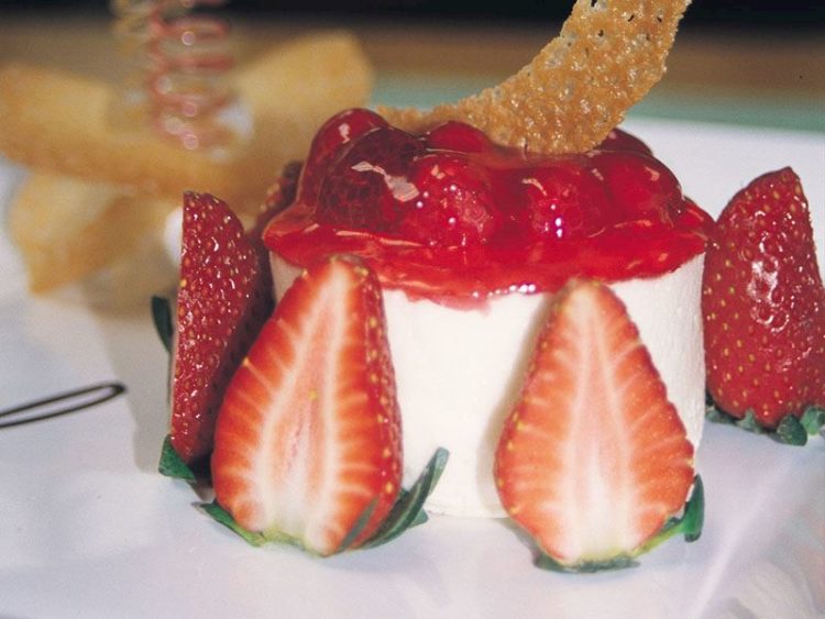 - Cheesecake’leri servis tabaklarına alıp üzerine çilekleri dizin..