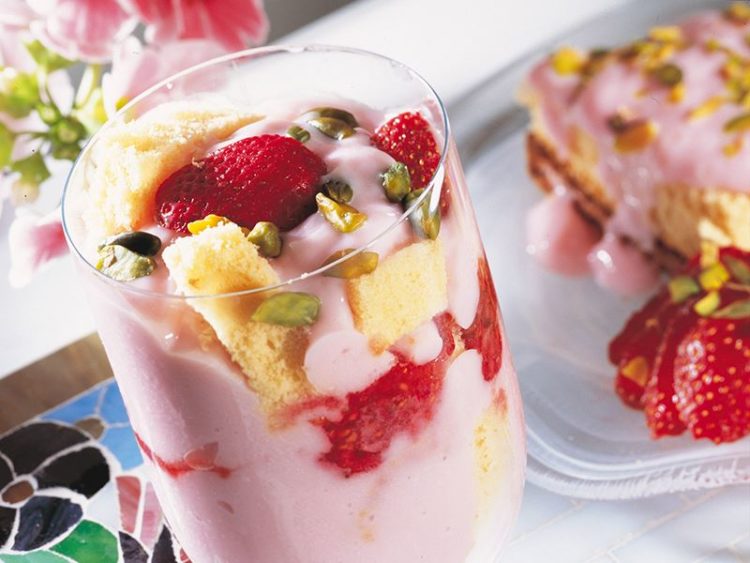 ayırdığınız çilek dilimleri ve antepfıstığı ile süsleyip servis yapın..