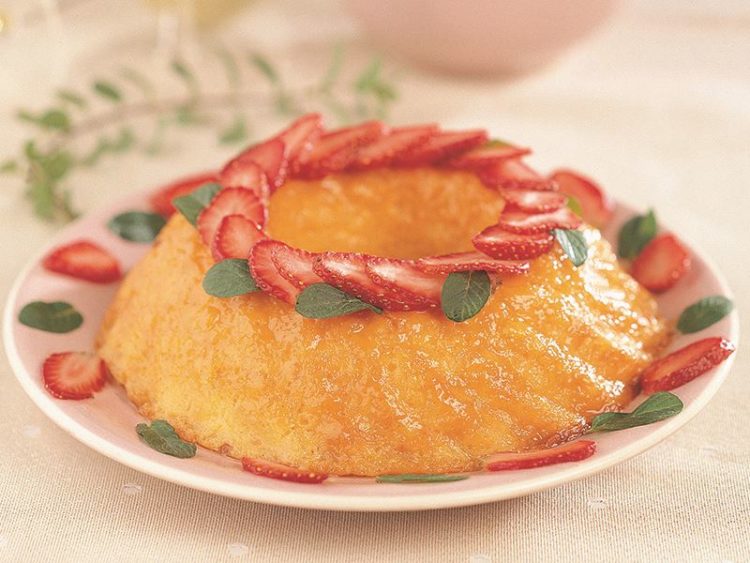 Kalıbı fırından çıkarıp kenarlarını bıçakla sıyırın ve servis tabağına ters çevirerek alın..