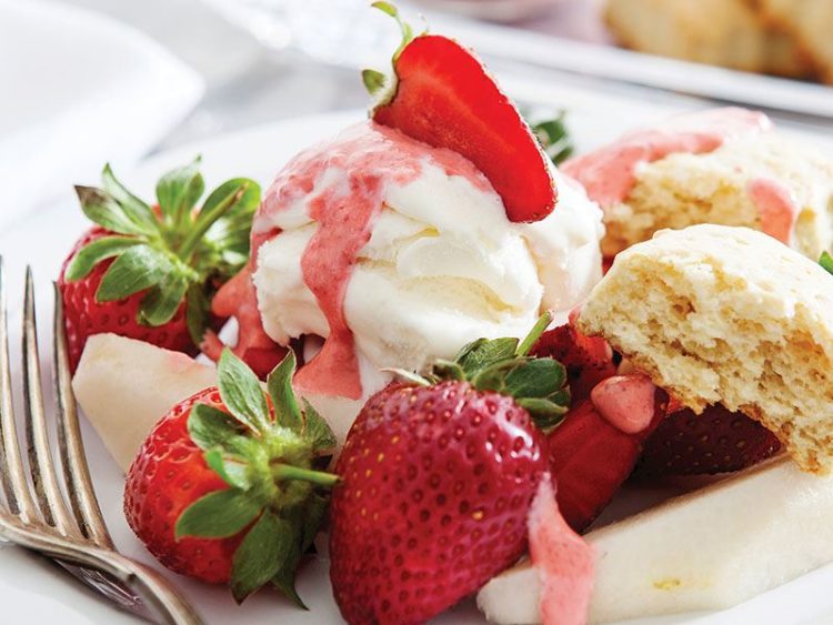 çilek püresi dökerek servis yapın..