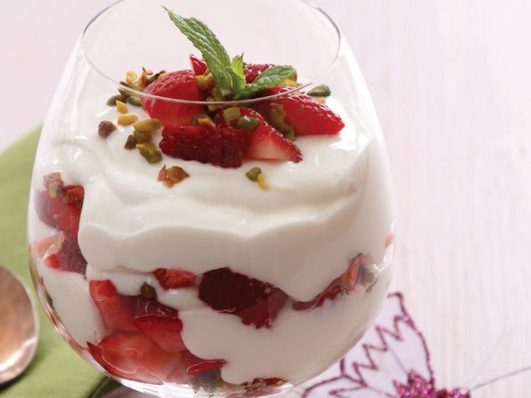 6. Üzerlerini çilek, Antep fıstığı ve nane yarpakları ile süsleyerek servis yapın..