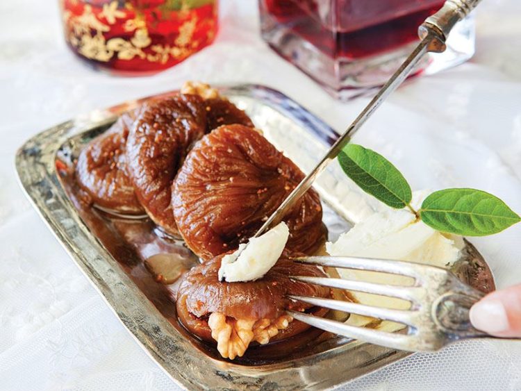 - İncirleri yıkayıp enine kesin ve içlerine ceviz içi ve şeker karışımından doldurun..