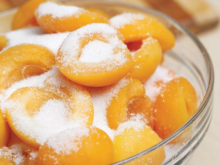 - Derin bir kaseye kayısıları alıp üzerine toz şekeri ekleyin..