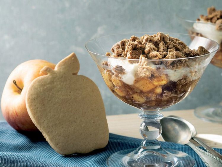 - Pişen elmalı harcı servis kuplarına alın..