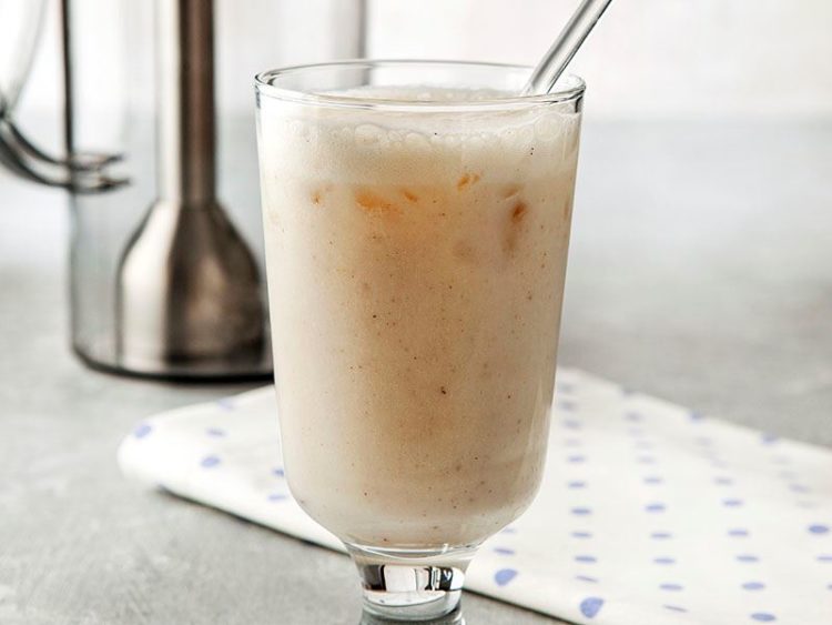 1. Muz dilimleri, bal, tarçın ve sütü aynı anda el blenderi ile