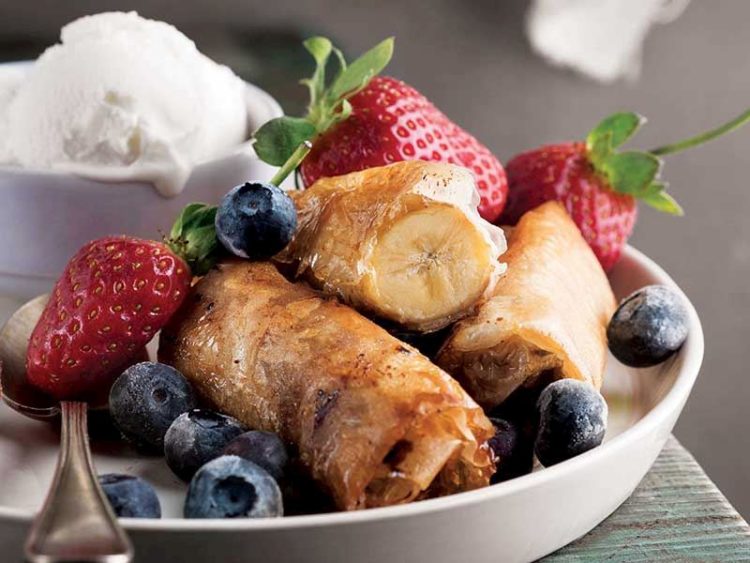 - Muzları yufkalara yerleştirin, üzerine çok az bal ve tarçın serptikten sonra sigara böreği gibi sarın..