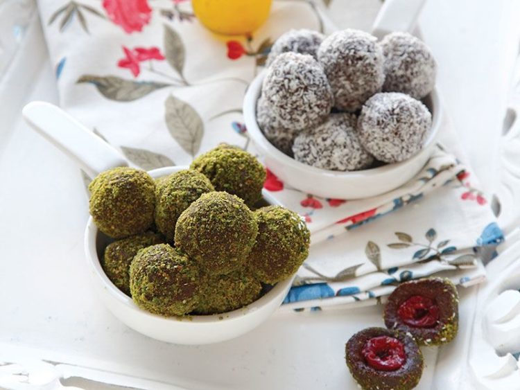 - Yarısını Hindistan cevizine, diğer yarısını toz Antep fıstığına bulayın..