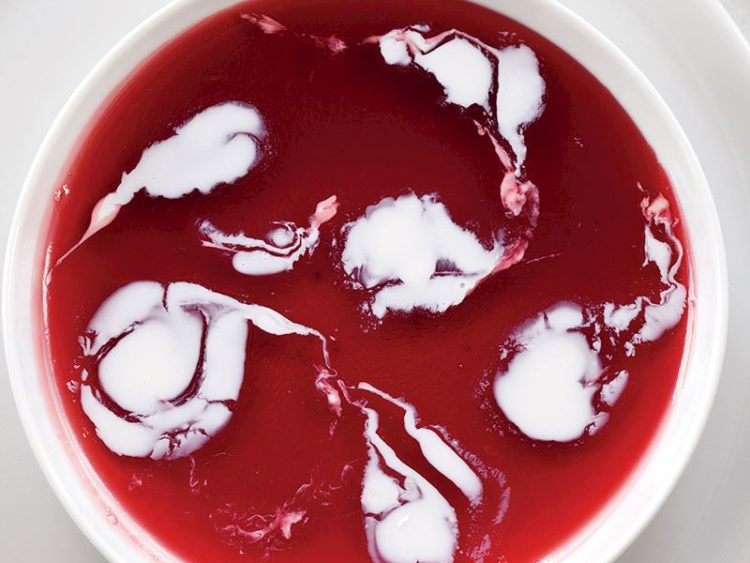 - Toz jelatinden 1 tatlı kaşığı kadar ayırıp kalanını vişne suyunun üzerine serpiştirin ve 10 dakika bekletin..
