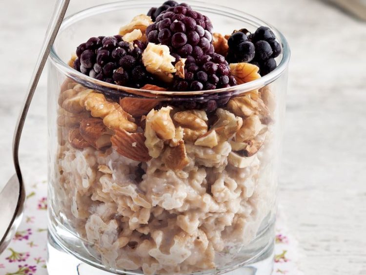 - Dinlenen sütlü yulafı servis kaselerine paylaştırın..