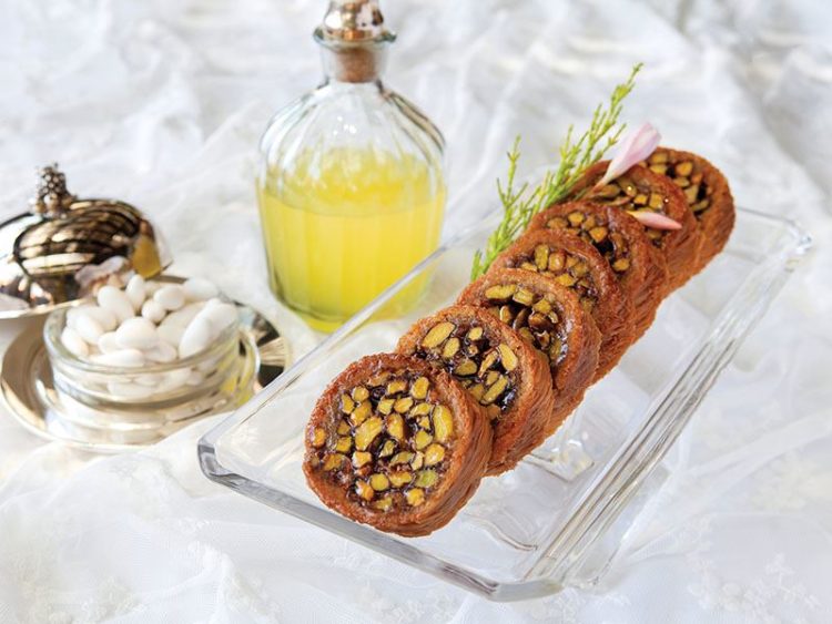 - İçine ufalanmış Antep fıstığı veya ceviz içini ekleyip sarma şeklinde sarın..