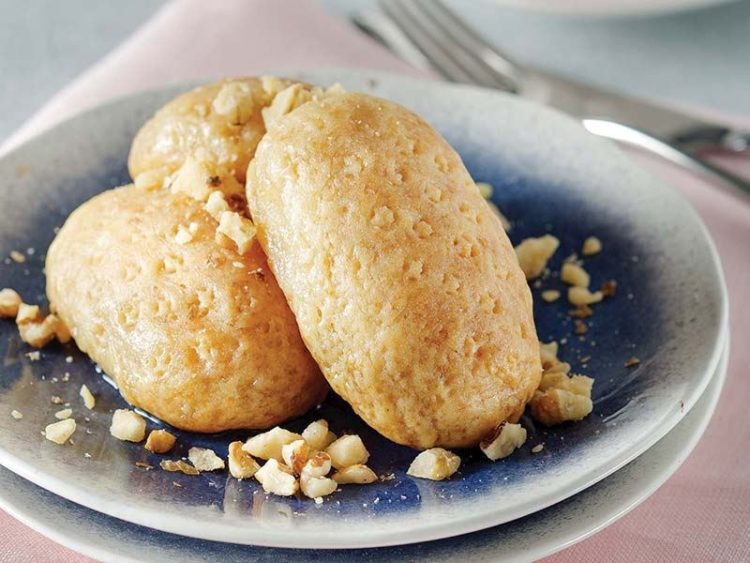 - Hamurdan parçalar kopartıp, kevgire bastırarak elips şeklinde yuvarlayın..