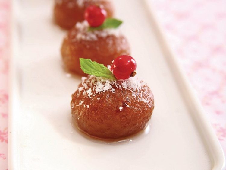 16. İyice yumuşadıktan sonra delikli bir kepçeyle tatlıyı içinden alıp servis tabaklarına paylaştırın..