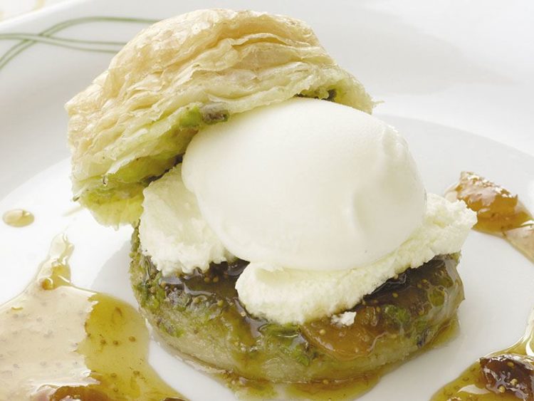 Kuru baklavayı servis tabağına alıp ortasını açın..