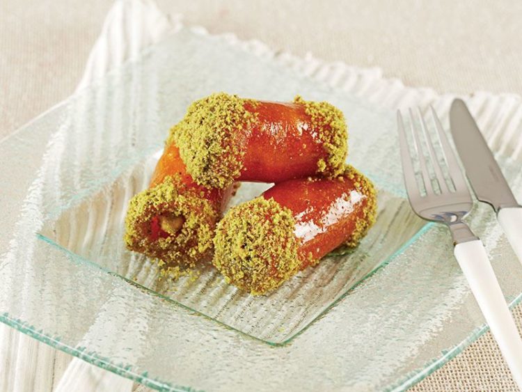 5. Ruloları şerbetin içine atıp birkaç dakika beklettikten sonra servis tabağına alın..