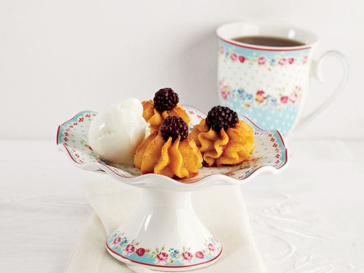 - Dondurma ve böğürtlenle birlikte servis yapın..