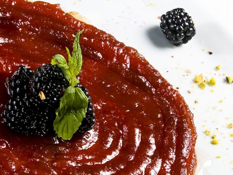 7. Böğürtlen ve nane yapraklarıyla süsleyerek servis yapın..