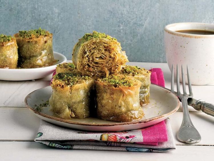 4. Antep fıstığının yarısını kadayıfın üzerine serpin..