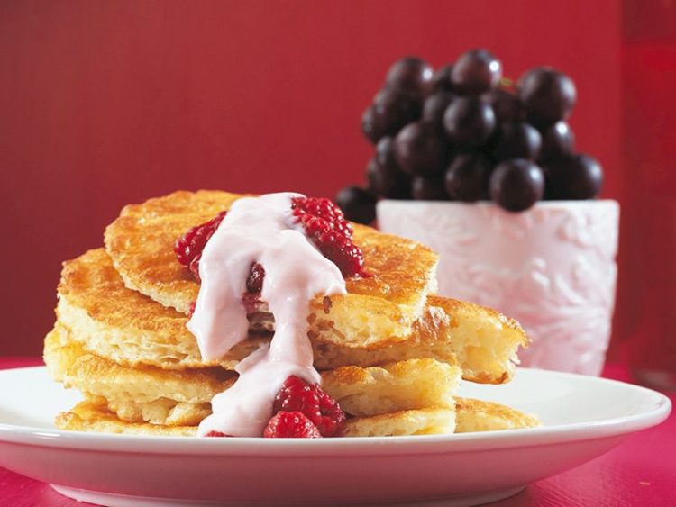 - Frambuaz sos için yoğurt ve pudraşekerini karıştırın..