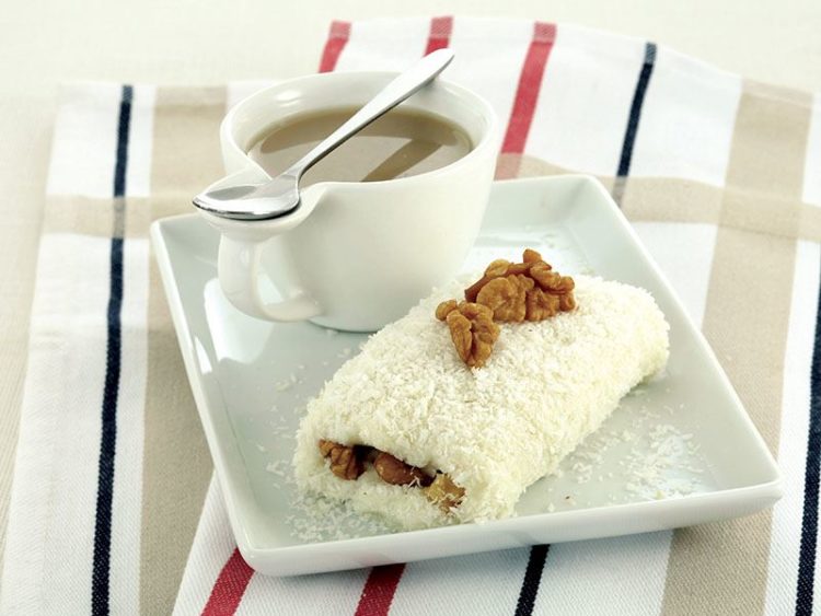 - İçine ceviz yerleştirip rulo şeklinde sarın ve hindistancevizine bulayın..