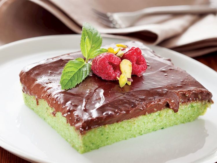 - Çikolatayı ekleyip eriyinceye kadar karıştırın ve ıspanaklı tatlının üzerine dökerek yayın..