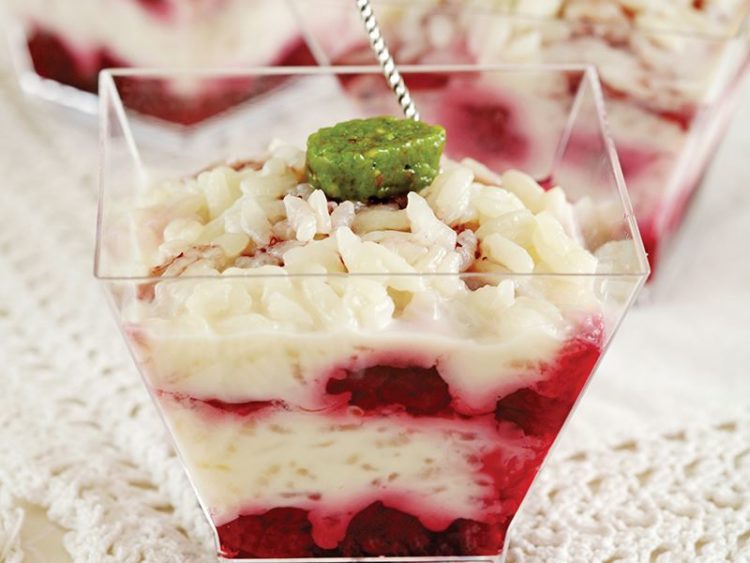 15. Üzerine pirinçli muhallebinin yarısını ilave edin..