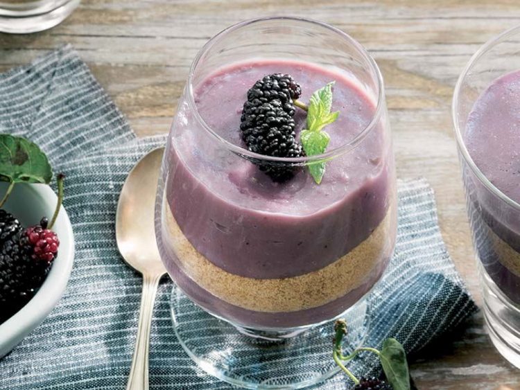 - Karadut püresini muhallebiye ilave edip karıştırın..