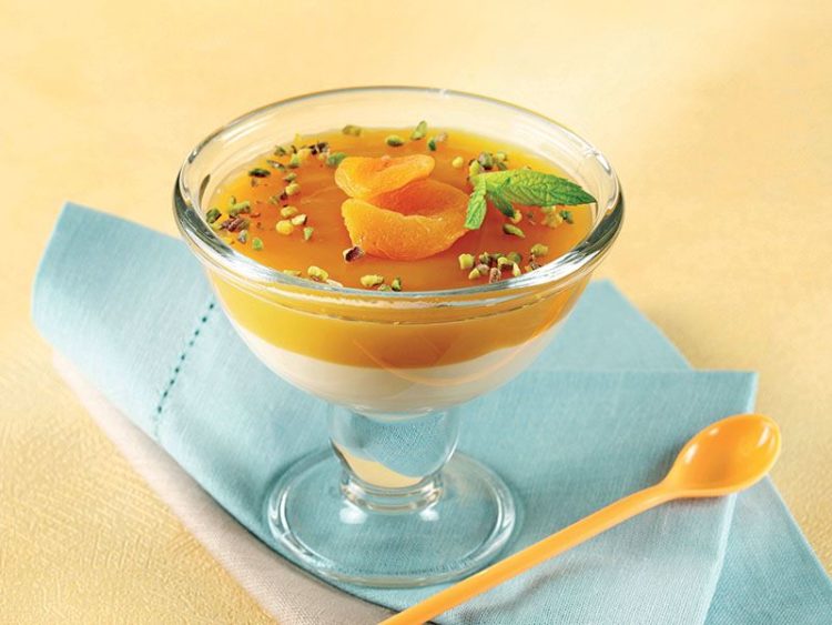7. Soğuyan kayısı suyunu muhallebilerin üzerine aktarıp donuncaya kadar bekletin..