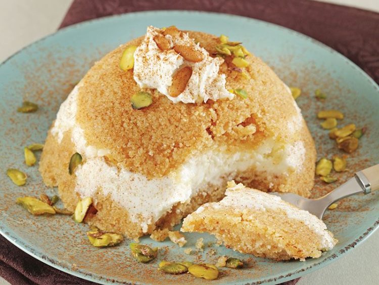 - Servis tabağına ters çevirip üzerini kaymak ve Antep fıstığı ile süsleyerek servis yapın..