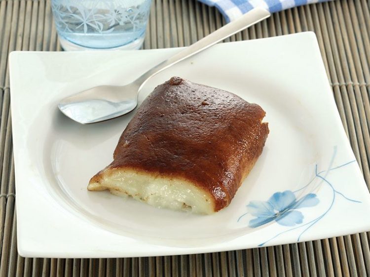 - Yağ ve şeker iyice kızarınca muhallebiden çok ince bir tabakayı üzerine aktarın..