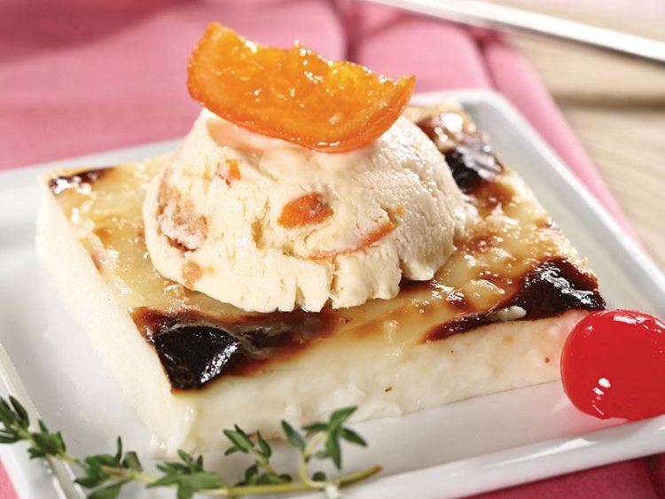 - Bir kaç saat beklettikten sonra dilimleyip, isteğe göre dondurma ve meyve şekerlemesi ile servis yapın..